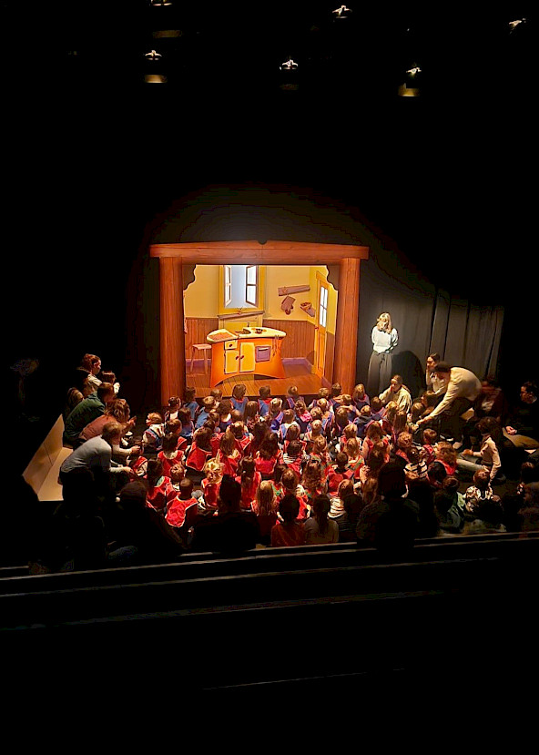 Les jeunes spectateurs et spectatrices devant le spectacle Pain d'épice en 2024