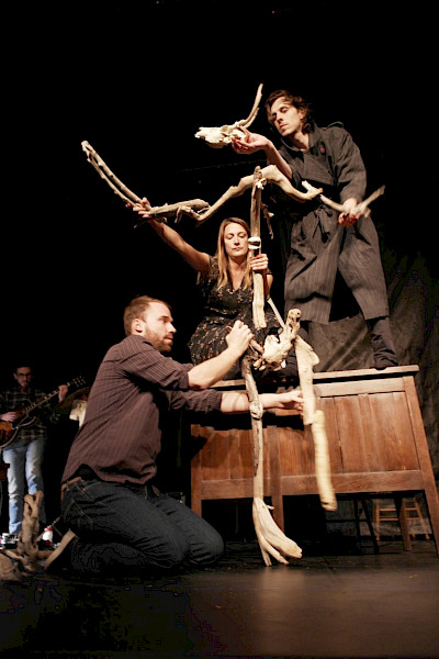 Nous en arrivons à un constat : La folie peut être belle. Avec notre création, nous désirons explorer la ligne incertaine entre la créativité et la folie. Mais comment allons-nous y arriver? Peut-être est-ce un peu comme assembler un squelette. Récolter les os, les bouts de bois blanchis par le sel de la mer, les galets pour bâtir notre propre histoire.