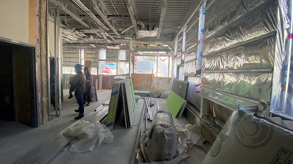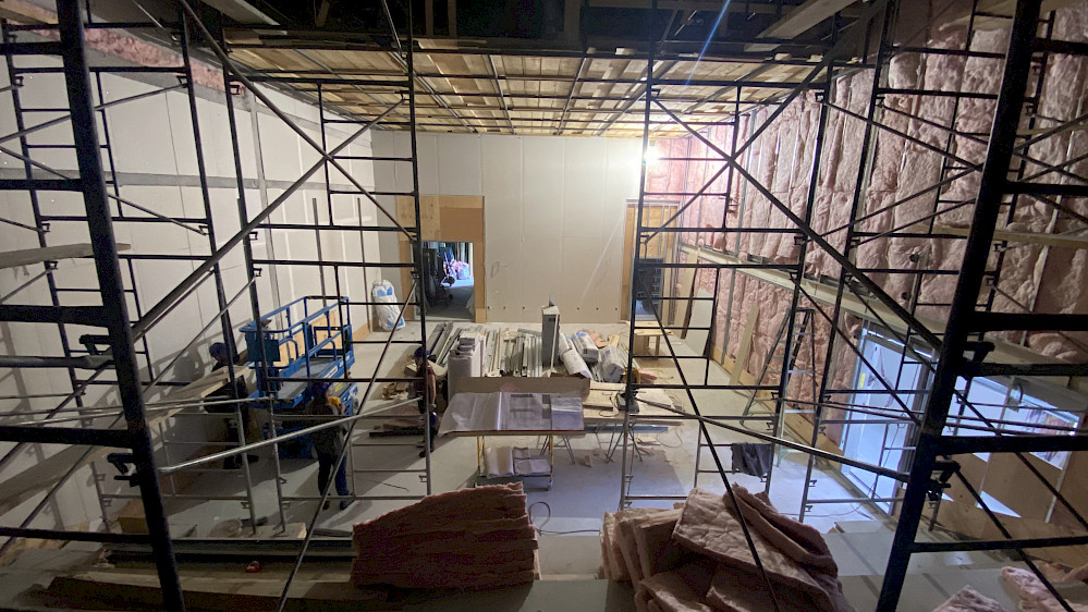 C’est surtout à l'intérieur du bâtiment que nous pouvons voir les plus grands avancements! Les cloisons montées et isolées permettent à toute l'équipe de L'Illusion de découvrir les espaces qu'il y aura à occuper. Les conversations commencent doucement à aborder les nombreuses idées d'aménagements, ce qui nous remplit de joie!