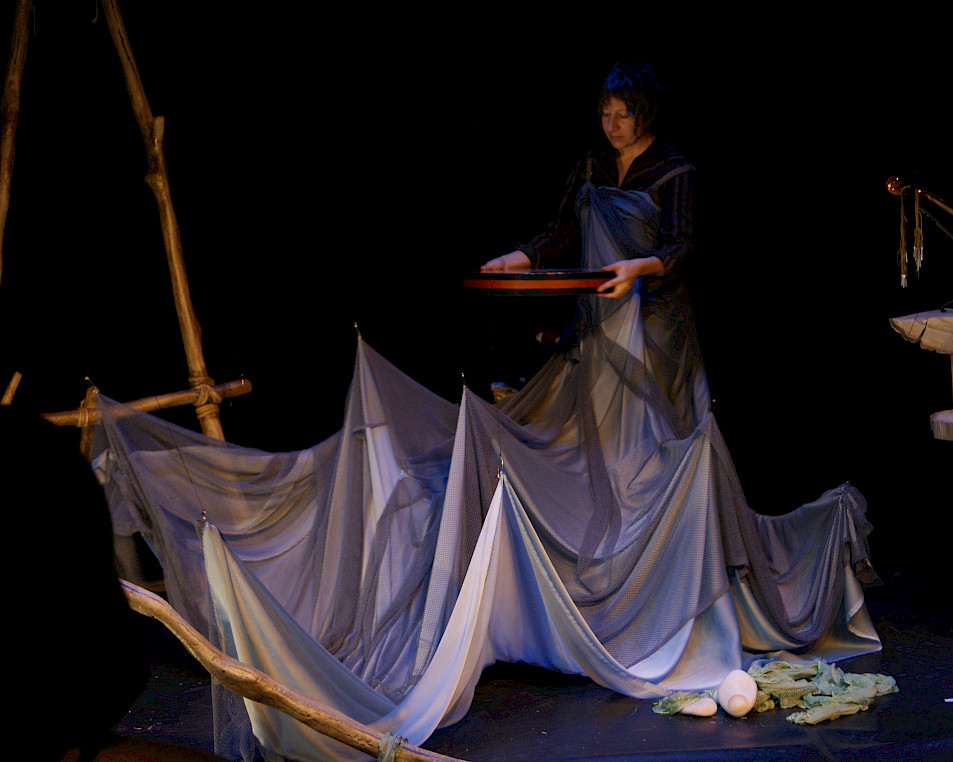 Depuis les débuts du processus de création d’Ondin, je désire intégrer les interprètes à l’espace pour qu’ils puissent s’y confondre, l’influencer et le transformer. Créer un espace de jeu tout en mouvement, vivant, enveloppant pour faciliter la plongée des tout-petits dans notre univers théâtral insolite.