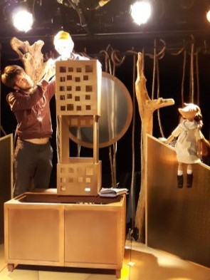 Toute l'équipe travaille ensemble d'arrache-pied : Nancy intègre des lumières dans des endroits insoupçonnés du décor. Laurence nous déniche des costumes fabuleux qui nous plongent totalement dans nos personnages. Sophie continue de peaufiner les marionnettes. Nicolas compose simultanément ses univers sonores et son interprétation. Pierre-Louis plonge tête première dans nos folles propositions sans jamais ralentir la cadence. Isabeau suit nos moindres gestes pour s’assurer que nous n’oublierons rien de toutes les idées qui jaillissent, des décisions qui se prennent.