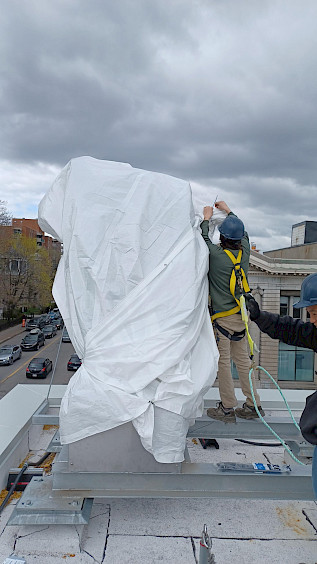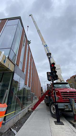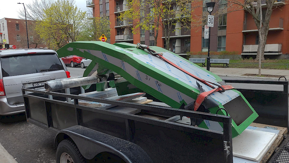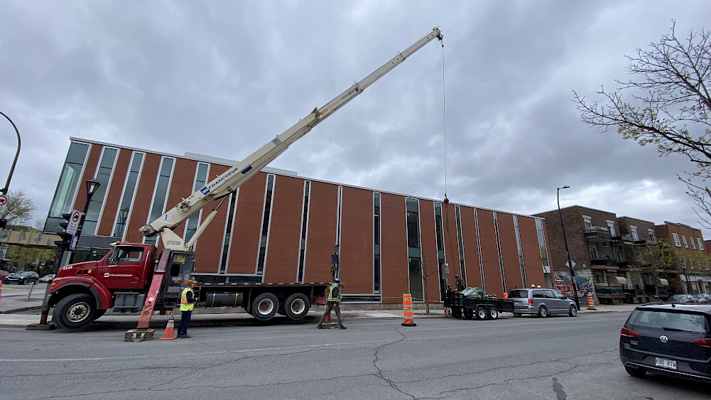 Vous l'avez peut-être remarqué lors de vos balades dans le quartier, une curieuse installation a pris place sur le toit de L'Illusion début mai! Il s'agit de l'œuvre d'art créée par l'artiste Guillaume Labrie dans le cadre de la Politique d’intégration des arts à l’architecture et à l’environnement des bâtiments et des sites gouvernementaux et publics. En attendant de vous faire découvrir l’œuvre miroitante qui viendra surplomber l'angle Saint-Denis - Beaubien, retour en image sur son installation!
