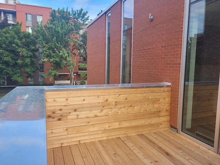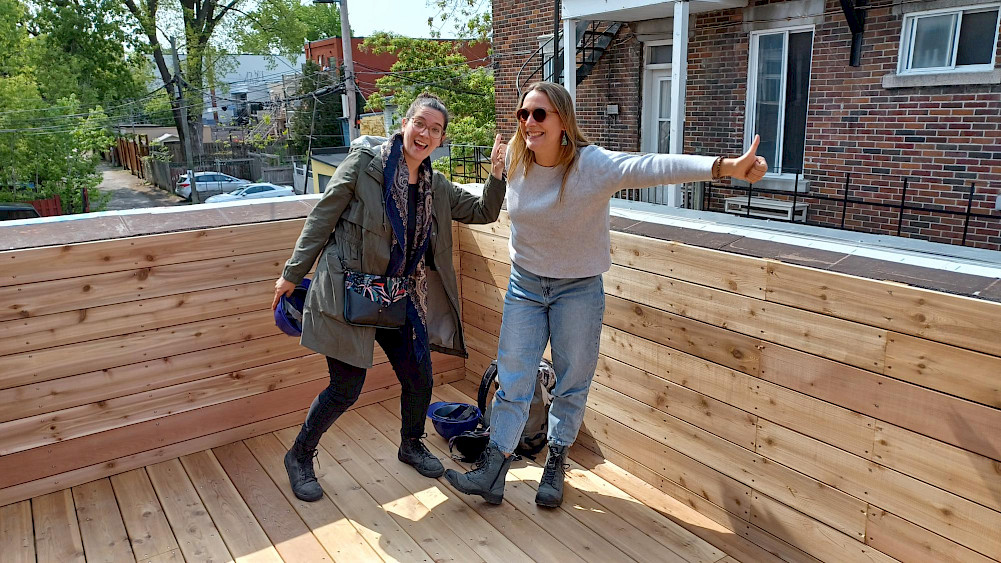 Dès que les premiers rayons du soleil sont arrivés, les travaux de la terrasse située à l'arrière du théâtre et qui surplombe la ruelle verte Denis-Drolet se sont finalisés. Nos codirectrices s'y sont installées pour réfléchir aux façons de l'aménager et de la verdir pour en faire un endroit convivial pour tous les artistes et travailleurs.euses culturel qui fréquenteront le théâtre!