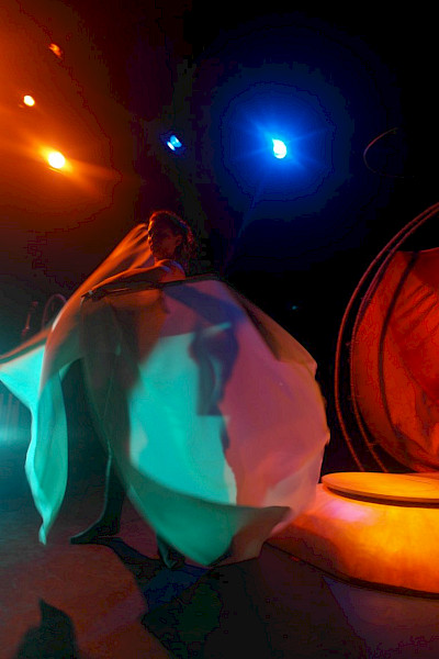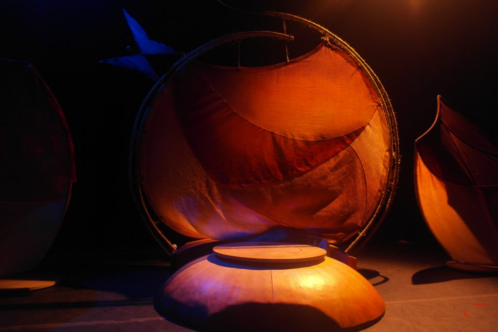Dans cet espace scénique, Maryse a créé un univers sonore des plus féériques. Nous avons fait de formidables trouvailles au niveau de l’intégration de la danse et des marionnettes. Lila-Mae est inspirante et propose de magnifiques images grâce à une manipulation dansée des marionnettes. Je sens vraiment que nous touchons à quelque chose de très spécial et que nous arrivons peu à peu à la proposition sensible et forte dont nous rêvons tant.