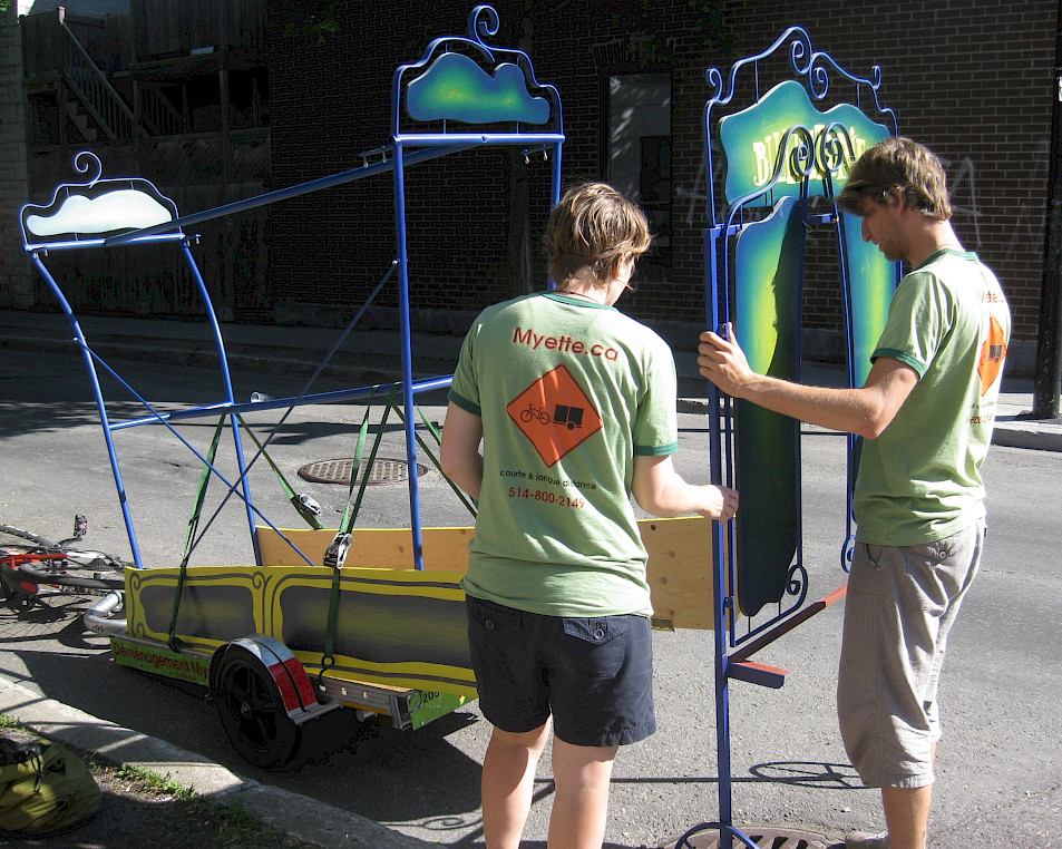 9h00 Arrivée des déménageurs à vélo de chez Myette!