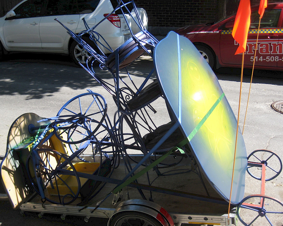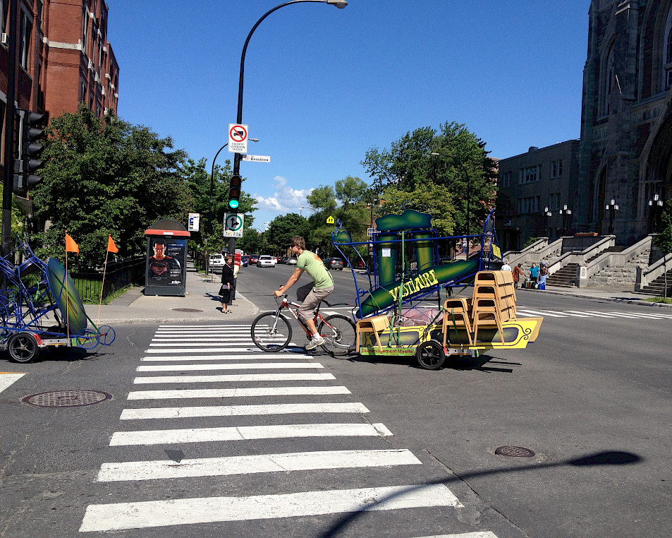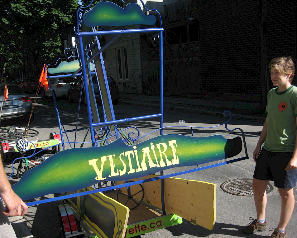 Pour nous aider à déménager nos «objets théâtraux» tel le vestiaire, la billetterie et les portes du théâtre, nous avons demandé l'aide des déménageurs à vélo Myette! Les deux déménageurs-cyclistes furent d'une aide inimaginable. Ils ont tout de même réussi à déménager un théâtre, ce n'est pas rien!