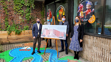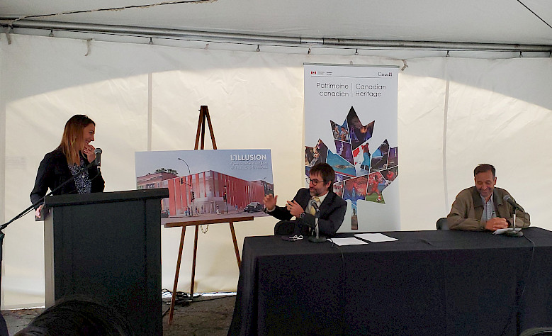 Le 9 septembre dernier fut un jour mémorable dans la concrétisation du projet. Nous étions rassemblés sous un chapiteau installé dans notre stationnement quand l’honorable Steven Guilbeault, ministre du Patrimoine canadien, a annoncé l’octroi d’une subvention de 3,44M$ au projet.