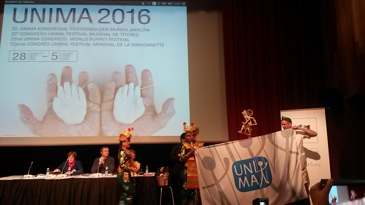 Des centaines de délégués du monde entier se réunissaient à San Sebastian et Tolosa, au Pays Basque espagnol, pour faire avancer les grands enjeux mondiaux de la marionnette. Le jour, nous avions d’importantes et intenses rencontres de Congrès et le soir venu, nous allions assister à des spectacles et cabarets marionnettes jusqu’aux petites heures du matin. C’était vraiment magnifique de rencontrer tant de gens de pays différents et tous animés par la même passion que moi. La marionnette, sous toutes ses formes, est forte et dynamique et elle se bat pour la liberté partout dans le monde. C’était beau à voir!