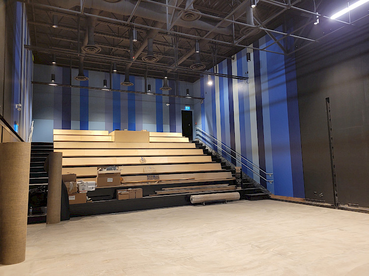 Les derniers mois de construction se font sentir sur le chantier de L'Illusion! Les derniers détails se complètent autant sur la façade que dans les différents espaces du théâtre.