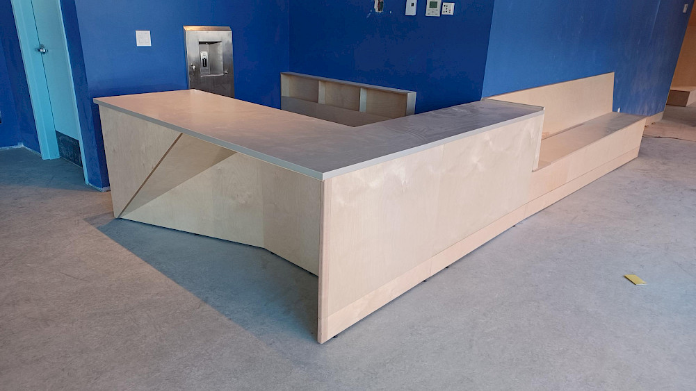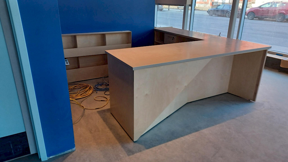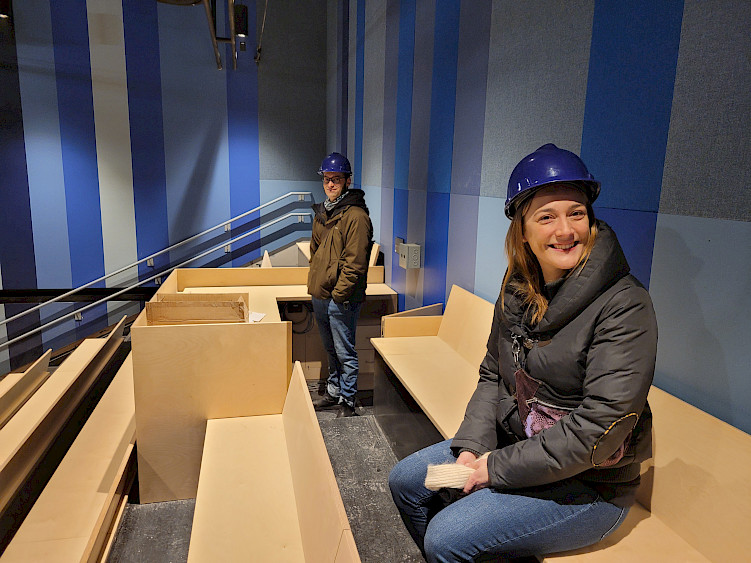 La menuiserie du foyer d'accueil est en cours d'installation! L'accueil du théâtre est enfin doté de son tout nouveau mobilier de billetterie, les entrées des salles de spectacle prennent forme. Tout a été pensé et conçu sur-mesure pour s'adapter à nos besoins mais surtout à ceux des plus petit.e.s spectateurs et spectatrices. Nous avons si hâte de vous voir prendre place dans ces espaces!