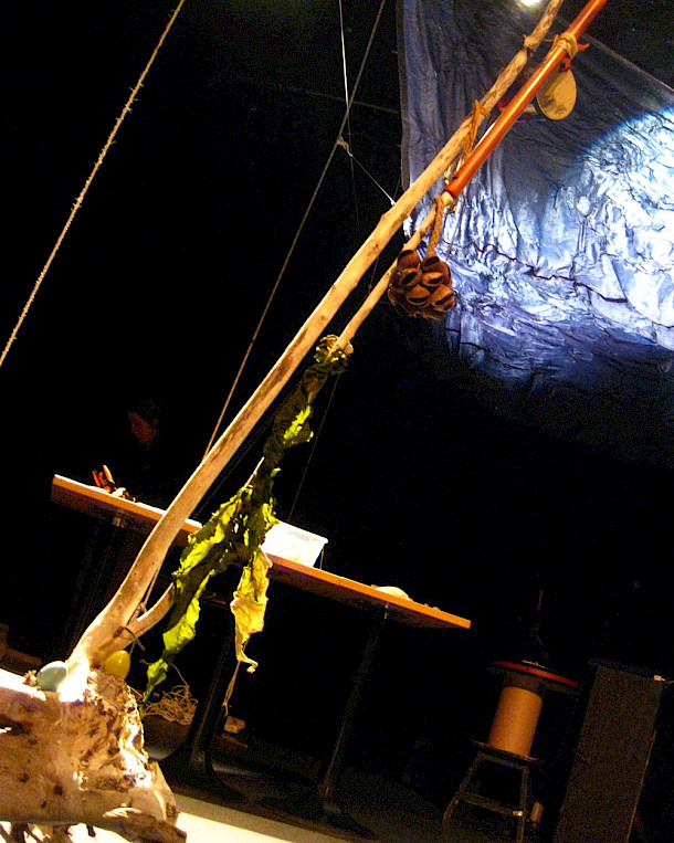 Suite à notre résidence, Josée Bergeron-Proulx, la scénographe d’Ondin, a approfondi ses recherches. C’est dans les coutumes de la pêche du monde entier qu’elle a puisé son inspiration.