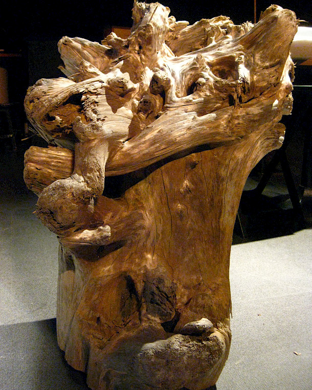 La beauté et le contraste du bois vieilli, des pierres polies, de l’eau qui miroite et de la