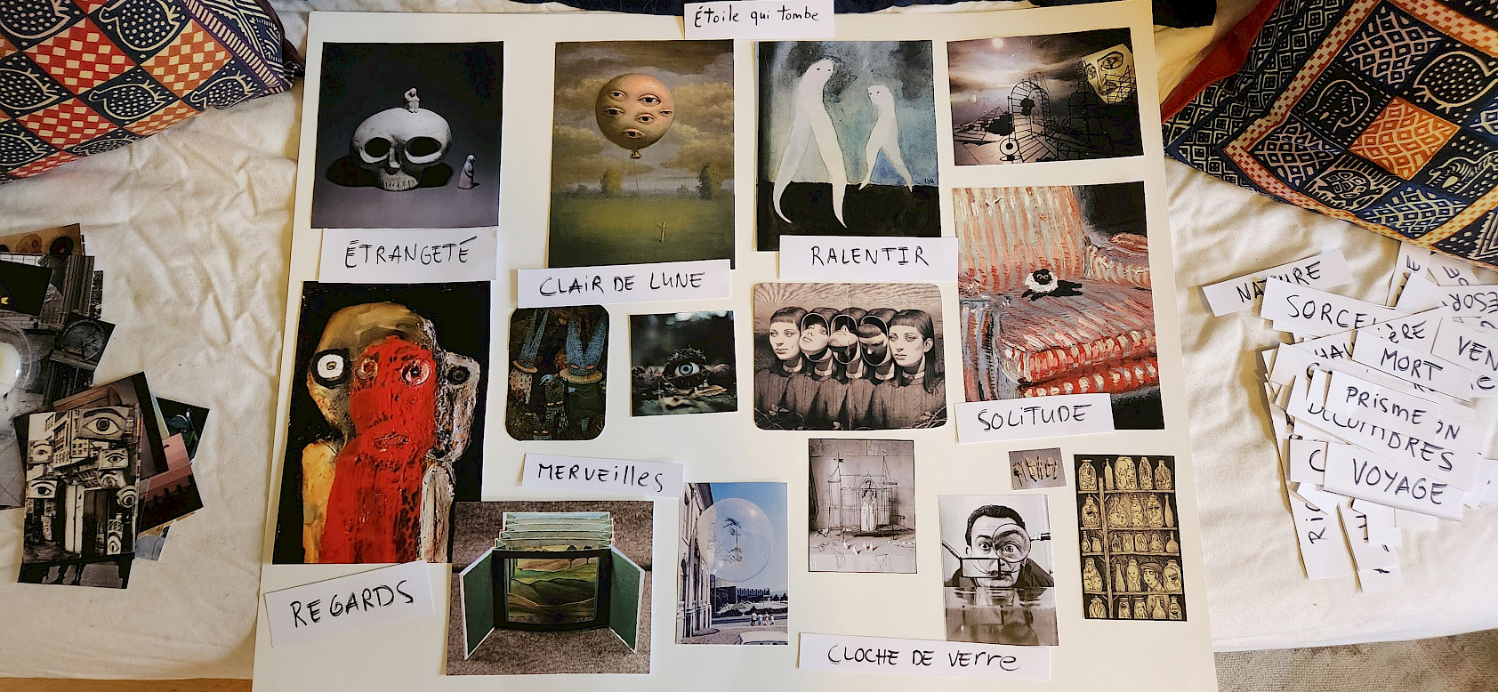 Nous tentons d’assembler. Tous les thèmes, les inspirations, toutes nos envies, nos besoins. Ce dont nous rêvons pour tenter de faire apparaitre le nouvel univers de notre prochaine création.