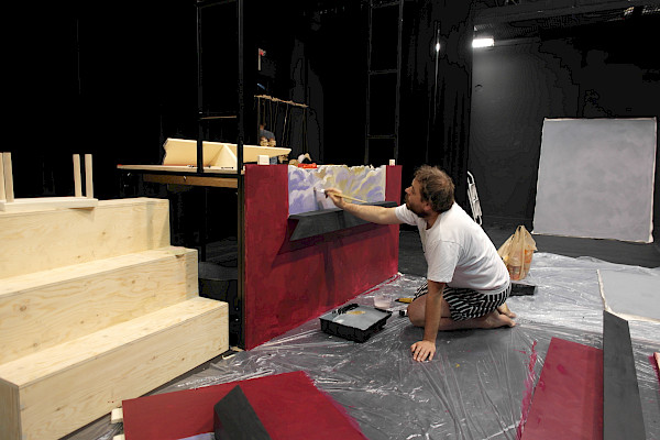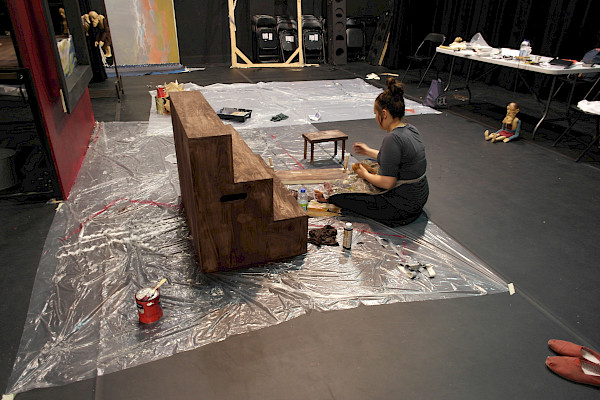 Du 10 au 17 juin, une véritable vague de folie créatrice déferla au Studio-théâtre! Nous avons profité de chaque journée où le scénographe Robert Smolik était présent pour travailler tous ensemble. L'objectif de la semaine était de s'assurer que toutes nos idées farfelues étaient réalisables, que chaque image que nous avions en tête pouvait prendre vie.
