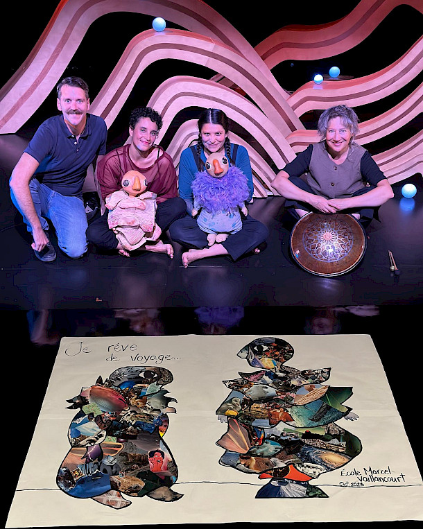 Pour cette tournée, l'équipe du spectacle s'est agrandie! Sur scène, Claude Bellemare, a rejoint Maryse Poulin et Paola Huitrón en tant que danseuse-marionnettiste en alternance avec Citlali Germé. Autour du spectacle, Samuel Morier et Kelly Rivard ont rejoint Vincent Prairie à la technique, et Marion Daigle a complété l'équipe de médiation composée de Sabrina Baran et Louis-Charles Sylvestre. Merci et bravo à toute l'équipe d’avoir illuminé les yeux des enfants!