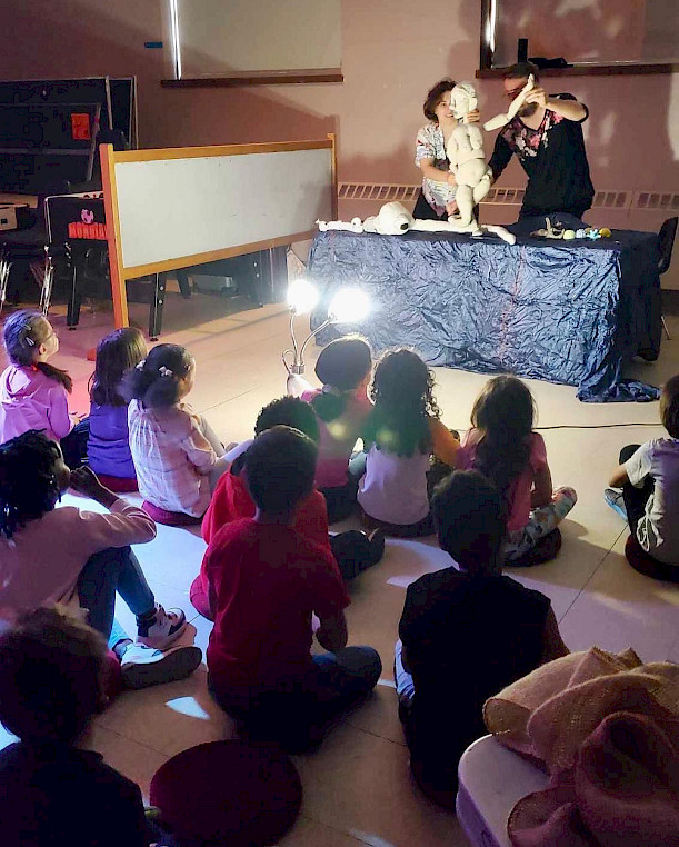 À L'Illusion comme en tournée, nous avons à coeur d'accompagner les enfants dans leur découverte du spectacle. En plus des rencontres en bord de scène à l'issue des représentations où l'équipe artistique répond aux premières questions, nous avons pu proposer des ateliers de médiation aux élèves de l’école Marcel Vaillancourt de Laval ainsi qu'aux familles venues découvrir le spectacle au Théâtre Gilles Vigneault de Saint-Jérôme. Conçus et animé par Louis-Charles, Marion et Sabrina, ces ateliers ont permis aux enfants d'explorer les thématiques du spectacle et de s'initier aux arts de la marionnette.