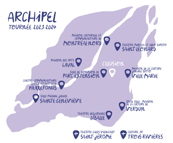 Vous êtes diffuseur et vous souhaiteriez accueillir Archipel au sein de votre programmation? Consultez notre section diffuseur et contactez-nous par courriel à communication@illusiontheatre.com.