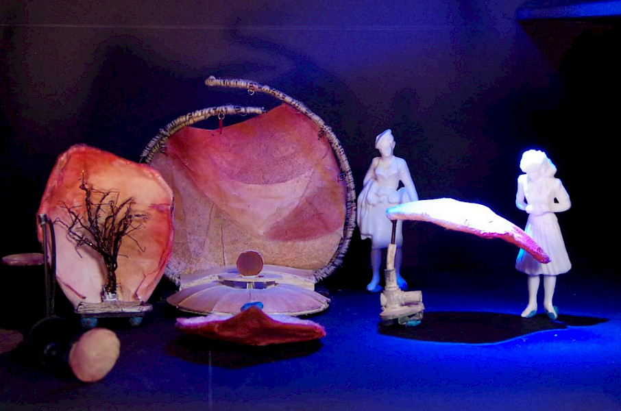 À la suite de notre résidence au Saguenay, ayant toute l’inspiration nécessaire, nous nous sommes lancées dans la conception des décors et marionnettes. Josée nous a réalisé une merveilleuse maquette de l’espace. Après plusieurs tests afin de trouver des matériaux inusités pouvant créer un univers organique étonnant, nous avons finalement arrêté nos choix. C’est l’Atelier Morel Leroux qui réalise notre ingénieux décor en ce moment même.