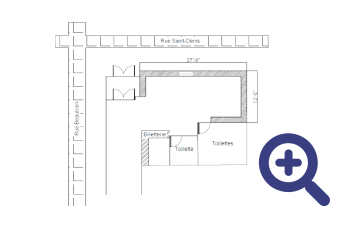 Profondeur : 25’10’’ (du mur au pieds des gradins amovibles : 30'1’’)
