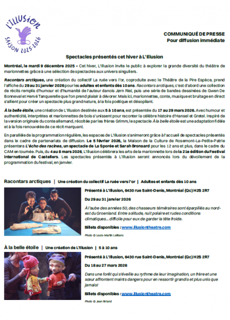 • 09/01/2024 - Spectacles à l'affiche cet hiver à L'Illusion